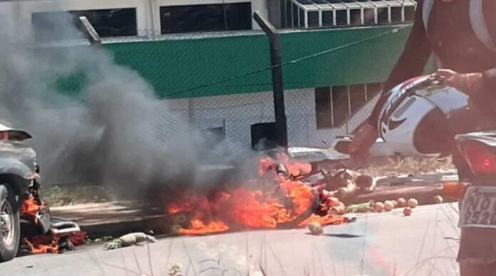 Após a colisão, ocorreu uma explosão e o motociclista acabou não resistindo. Vídeos compartilhados nas redes sociais mostram as chamas altas e o corpo sendo queimado.