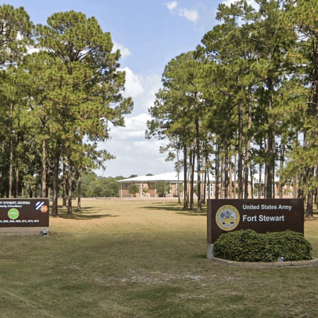 Localizada a cerca de 64 quilômetros a sudoeste de Savannah, a Fort Stewart é a maior base do Exército americano a leste do Rio Mississippi.