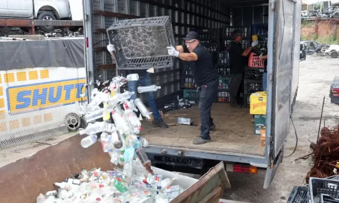 O material, cerca de 7 toneladas de vidro, foi encaminhado para uma empresa especializada em reciclagem após autorização judicial.