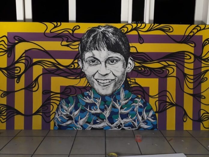 “Conterrâneo” reúne obras dos artistas parintinenses Curumiz de Alziney Pereira e Kemerson Freitas, contando com seis pinturas de grafite sobre folha de compensado, uma pintura/rede, um bloco com desenhos lambe-lambe e um grafite de parede, que colocam em evidência uma identidade própria na composição das obras desses artistas.
