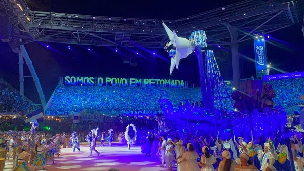 Do chão, o apresentador Edmundo Oran introduziu o tema da noite, “Kizomba: Retomada Pela Tradição”, chamando a Nação Azul e Branca para o rufar dos tambores, dando início a segunda noite do festival.