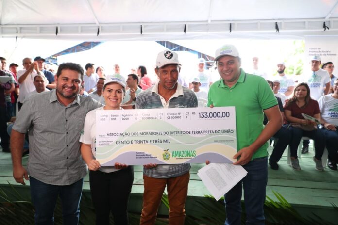 O governador do Amazonas, Wilson Lima, entregou, na quarta-feira (22/05), à Associação dos Moradores do Distrito de Terra Preta do Limão, localizada na zona rural do município de Barreirinha (a 334 quilômetros de distância em linha reta de Manaus), um cheque simbólico no valor de R$ 133 mil.