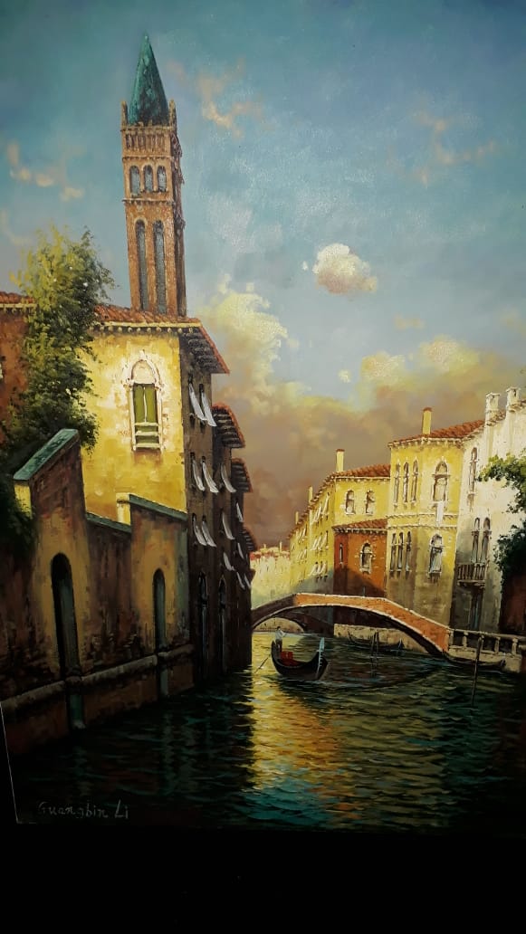 O quadro que aparece na foto é o “Veneza” – Óleo sobre tela