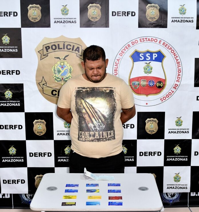 A Polícia Civil do Amazonas, representada pelos delegados Guilherme Torres e Demetrius Queiroz, titular e adjunto, respectivamente, da Delegacia Especializada em Roubos, Furtos e Defraudações (Derfd), falou, na manhã desta quinta-feira (23/05), durante coletiva de imprensa realizada às 9h30, no prédio da unidade policial, sobre o cumprimento de mandado de prisão preventiva por estelionato e furto mediante fraude em nome de Edson Silva Junior, 39, por enganar um aposentado de 55 anos, furtar o cartão bancário dele e realizar saque de R$ 4,4 mil indevidamente.