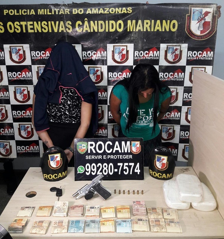 Policiais da Ronda Ostensiva Cândido Mariano (Rocam) detiveram, na noite de quinta-feira (06/12), duas mulheres suspeitas dos crimes de tráfico de entorpecentes, porte ilegal de arma de fogo e corrupção ativa. O fato aconteceu na rua nossa Senhora de Fátima, no bairro Cidade de Deus, zona leste, após recebimento de denúncia anônima pelo WhatsApp linha direta da Rocam.