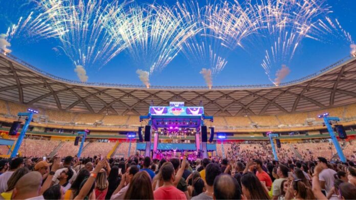 A Arena da Amazônia foi palco, no sábado (16), de mais uma edição da turnê comemorativa “Tardezinha – 10 anos”, comandada por Thiaguinho. Esta foi a segunda vez que o cantor se apresentou no estádio, consolidando a cidade como um dos destinos preferidos do projeto. O evento reuniu milhares de fãs e durou mais de seis horas, com o público cantando em coro sucessos do pagode e do samba.
